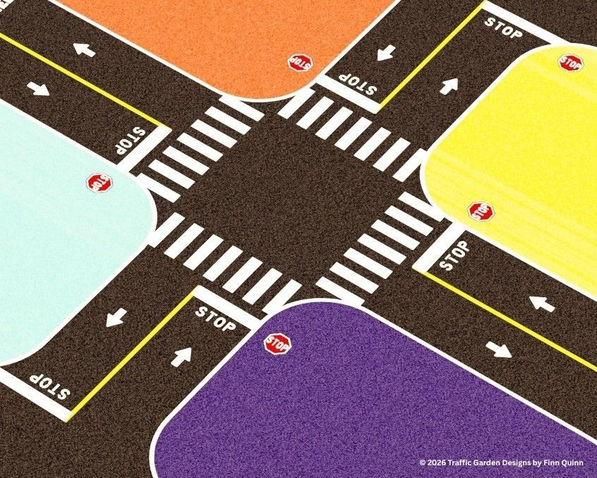 Explore our twelve traffic garden layout options, each designed to fit a range of existing sites, from compact courts to larger paved spaces. Whether you’re working with a tight footprint or a more expansive area, these layouts are sized and configured to make the most of your site. If you’re still evaluating your space, visit our Site Selection page for guidance on choosing the best fit. Some sites can accommodate multiple layout options, while others will align best with a single option. Call us to discuss further if you need advice about the site.