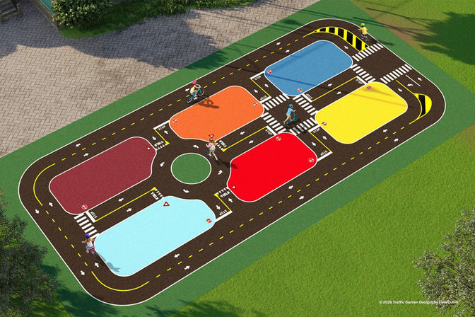 Clear, continuous riding routes support beginners, while intersections and decision points introduce challenge and keep more confident riders engaged. Smaller internal spaces also provide flexibility for programming and group use.